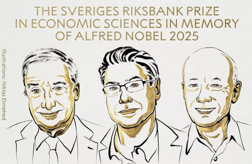 أعلنت الأكاديمية الملكية السويدية للعلوم في ستوكهولم اليوم منح جائزة نوبل في العلوم الاقتصادية لكل من البروفيسور جويل موكير، والبروفيسور فيليب أغيون، والبروفيسور بيتر هويت.